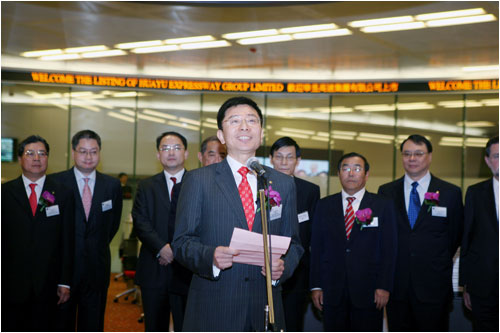 高國富董事長在上市儀式上代表集團公司向香 高國富董事長在上市儀式上代表集團公司向香