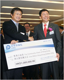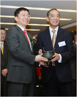 港聯(lián)交所主席夏佳理贈送上市紀念品——代表 港公益金捐贈100萬港幣,用于慈善事業(yè)。