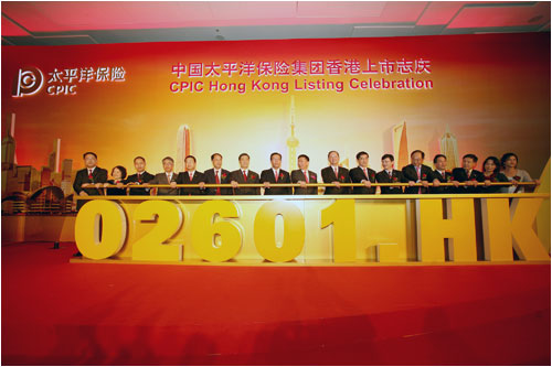 今日,中國太保H股在香港聯(lián)合證券交易所舉行隆重的上市儀式。