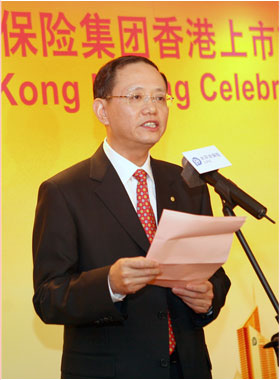 中國太保順利實現(xiàn)在聯(lián)交所掛牌,標志著中國太保全面走向國內、國際資本市場,掀開了公司持續(xù)發(fā)展的新篇章。展望未來,我們的戰(zhàn)略目標是堅持專注保險主業(yè)、價值持續(xù)增長,將中國太保建設成具有國際競爭力的一流保險金融服務集團。我們將嚴格遵守上市規(guī)則,審慎使用募集資金,完善公司治理,深化經(jīng)營管理,以更加優(yōu)良的經(jīng)營業(yè)績,回報投資者,回報客戶,回報員工,回報社會!